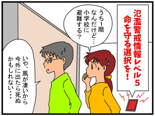 近くの川が氾濫危険水域を超えたと何度も連絡が来るので、浸水は覚悟しました。