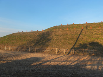 古墳の上の方に、土器のようなものが並んでるのわかりますか?