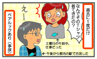 子どもたちがまだいなかった時にね 駅で待ち合わせをしたら、新婚旅行(モルディブ)で買った色違いのTシャツを着てきちゃったんです。