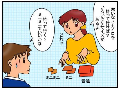 でも「寒い、寒い」と言うので、カイロを取り揃えてみました。