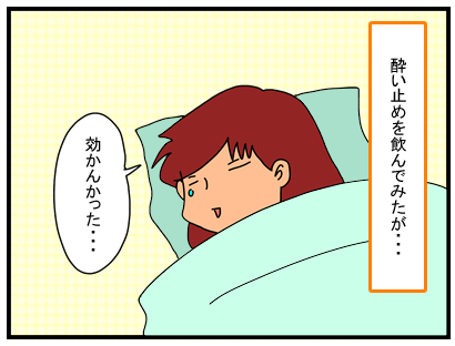 夕飯もまともに食べられなかったので、まーさんが心配して「酔い止め飲む?」と持ってきてくれました。